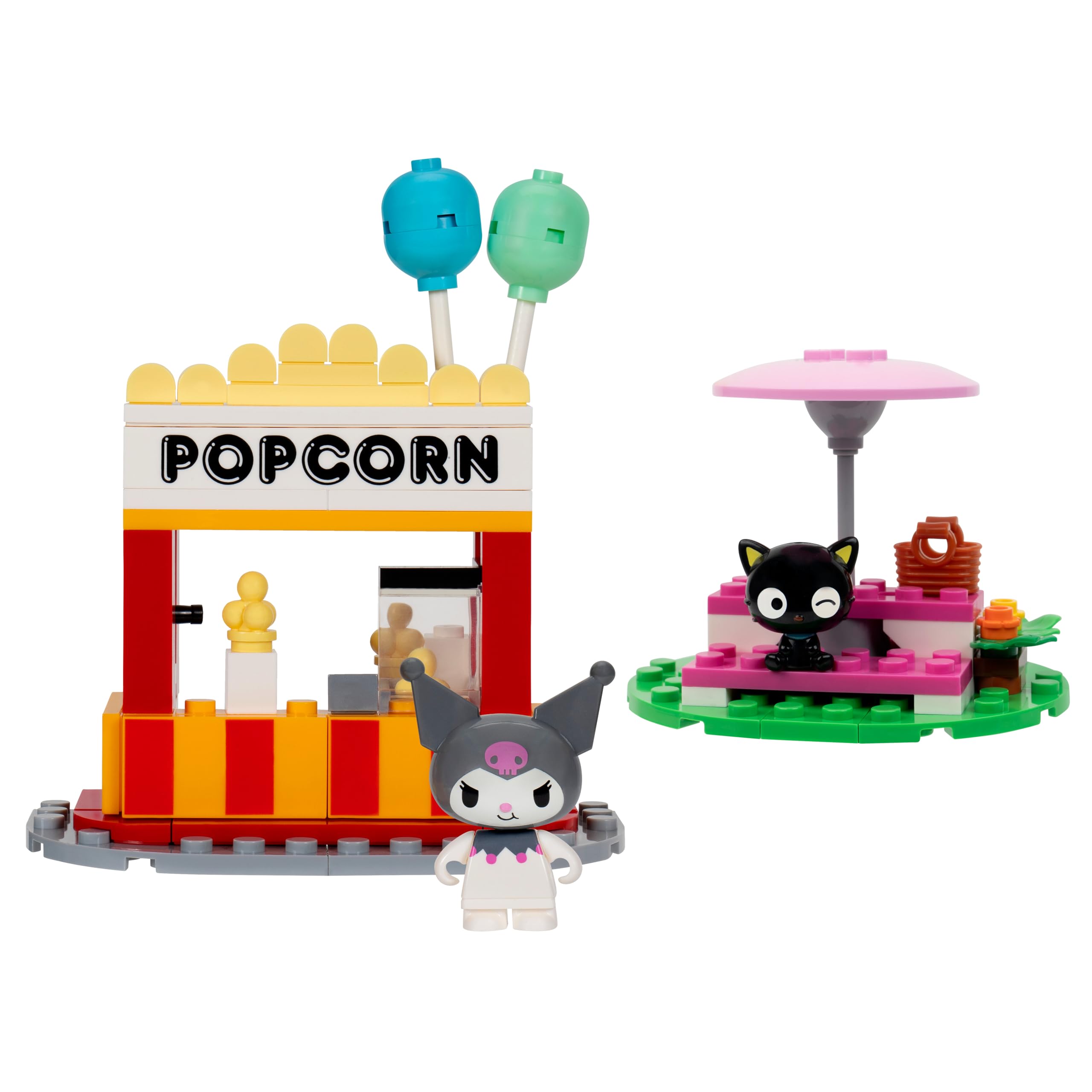 - ACCESSORIES Build a charming picnic table with an umbrella, perfect for savoring the popcorn from Kuromi’s renowned Popcorn Stand, which features an exciting push-button "popping" action that brings the fun of fresh popcorn right to your gathering