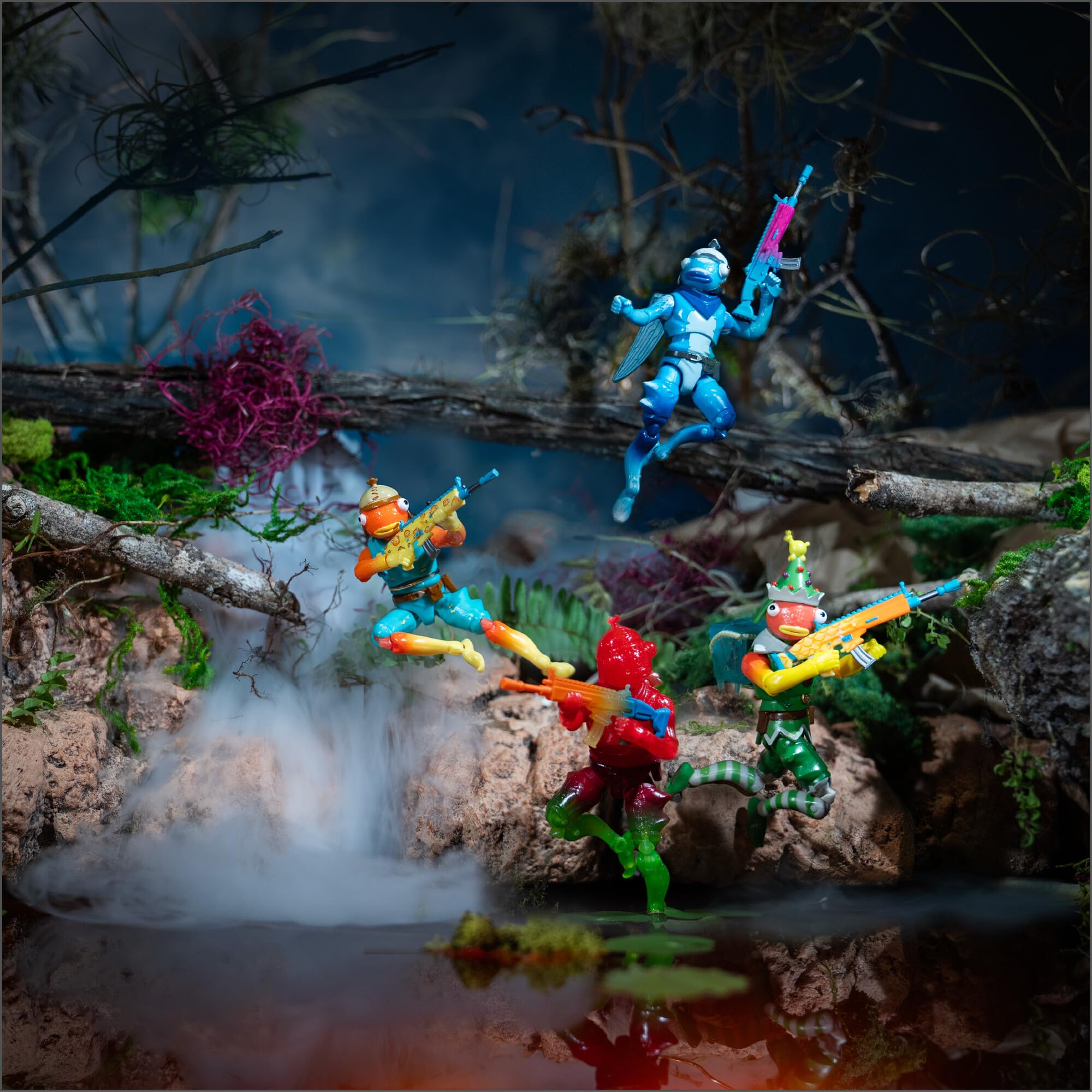 Jazwares Fortnite Frozen Fishstick Four Pack - Four 4-inch Articulated Figures with Back Bling and Weapon Accessories